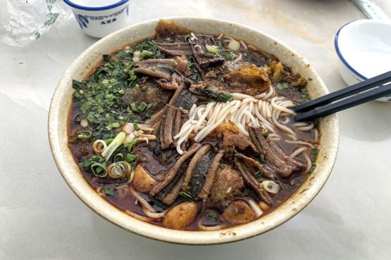 西南地区的鳝鱼面、鳝鱼米粉常以麻辣重口味为主,云南玉溪最有名的鳝鱼米线就是典型代表。米线上的“帽子”除了事先烧好的鲜香的鳝鱼段,还有炸透的猪皮,当地叫“叶子”,在汤里浸泡后变得柔韧入味;撒在米线碗里的新鲜韭菜、薄荷叶,更是起到了开胃又解腻的作用。