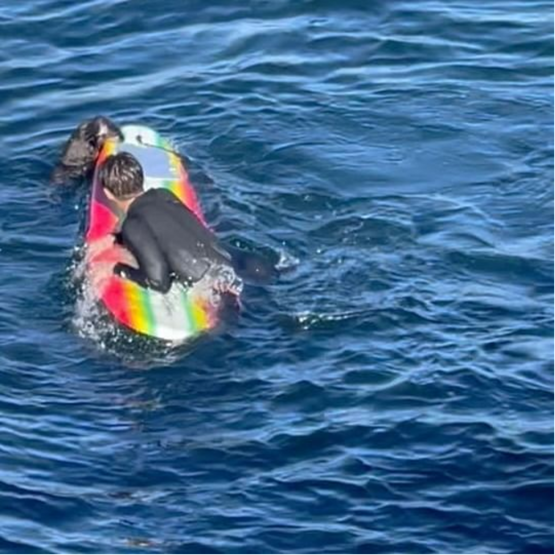李竣惊慌失措。“我被吓到了。我试图游走,但在我游远之前,它咬住了我的脚绳。”那条绳子一端绑在冲浪板上,另一端则被冲浪者戴在脚踝上,这样即使冲浪者掉下板子,也可以迅速收回冲浪板。