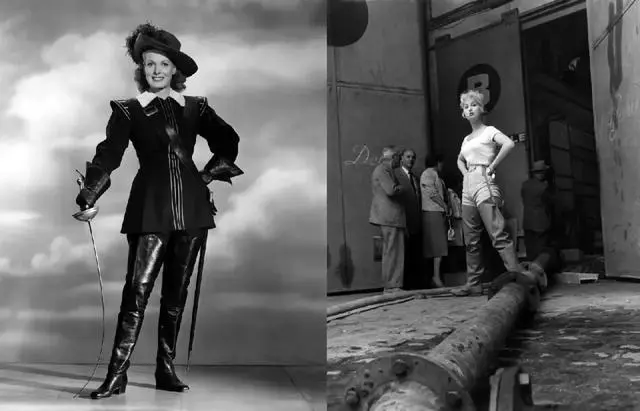 17世纪,在剧院和歌剧院扮演男性角色或“马裤角色”的女性偶尔会穿着长筒靴。这些马裤角色对于20世纪初的女演员来说是一次难得的穿着暴露服装的机会,也是吸引更多关注的机会。在扮演迪克·惠廷顿等历史人物时,男主角经常将过膝靴作为服装的一部分,展现他的英雄性格。