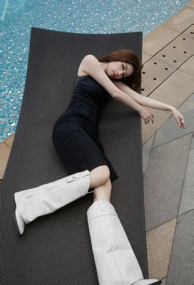 长筒靴不仅具有修饰腿型的作用,还能通过高跟来增加气场,因此是女孩们出街造型的选择之一。最近穿衣越来越有自己风格的辣妹虞书欣用一条黑色紧身连衣裙搭配造型特别的白色裤管靴,一黑一白之间,尽显利落与潇洒。像半截裤管一样的靴筒盖住下面鞋身的裤管靴是本季流行的大势,更具造型感的同时也兼具了未来主义风格。