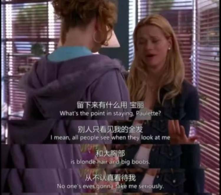 ▲在旁人不认可眼光里备受挫败的艾丽。/《律政俏佳人》