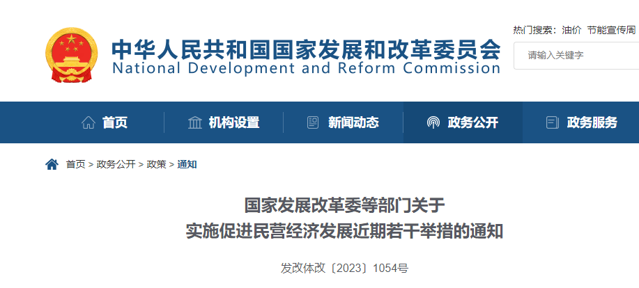 国家发展改革委网站8月1日消息,国家发展改革委、工业和信息化部、财政部、科技部、中国人民银行、税务总局、市场监管总局、金融监管总局等部门发布关于实施促进民营经济发展近期若干举措的通知。