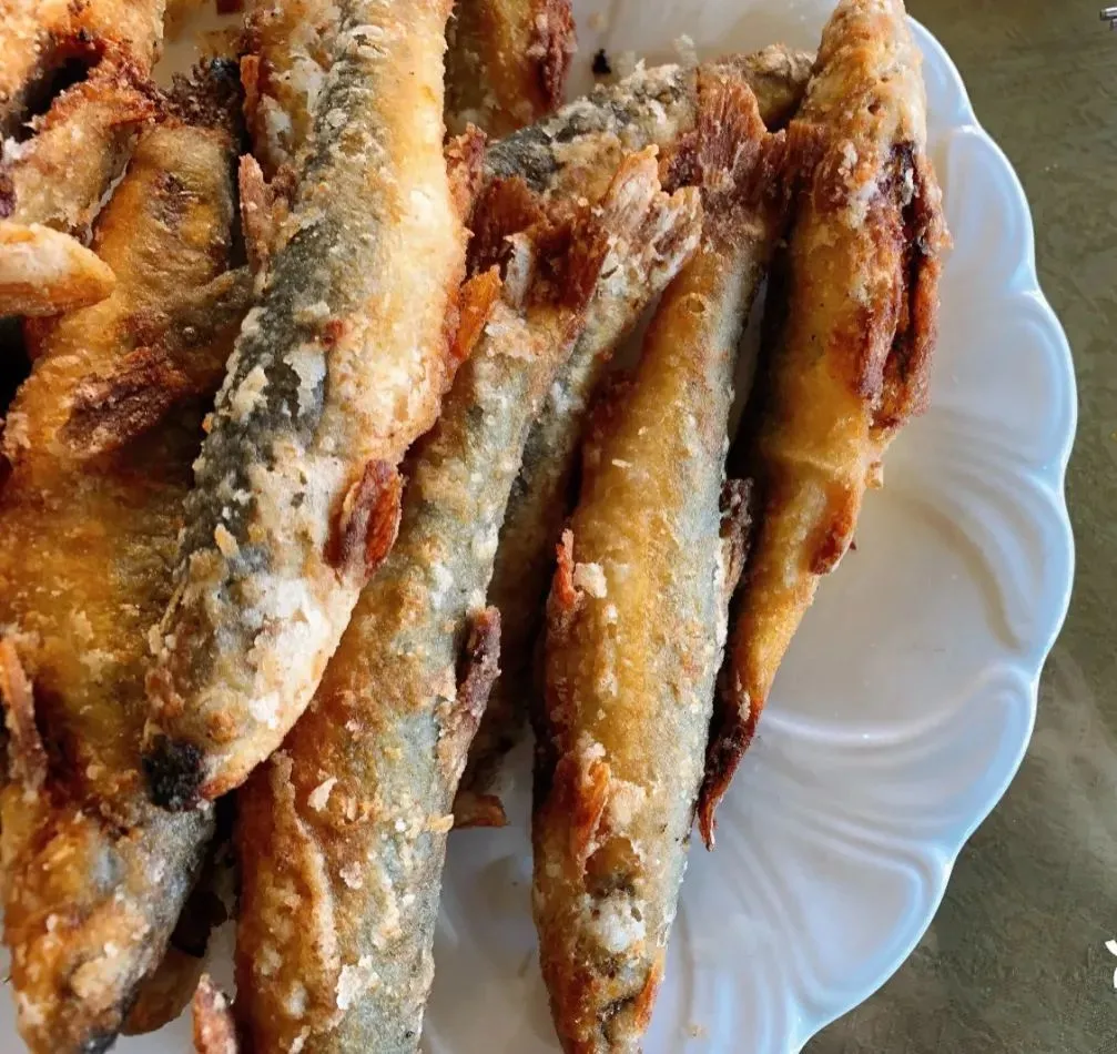 当地处理燕尾菜的方式应用了鲁菜的“酥炸”,裹上一层薄薄的面衣,经过菜籽油的催发,燕尾菜出现类似天妇罗的独特外形。一口咬下去,酥脆掉渣,但内芯又保留一定的汁水和微苦,在一桌硬菜里,特别开胃。
