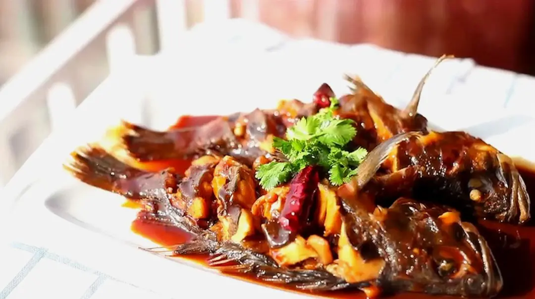 当地人以传统酱焖的方式烹饪老头鱼,红亮入味,咸鲜交织,这是富饶东北林区“棒打狍子瓢舀鱼”良好生态环境的馈赠。