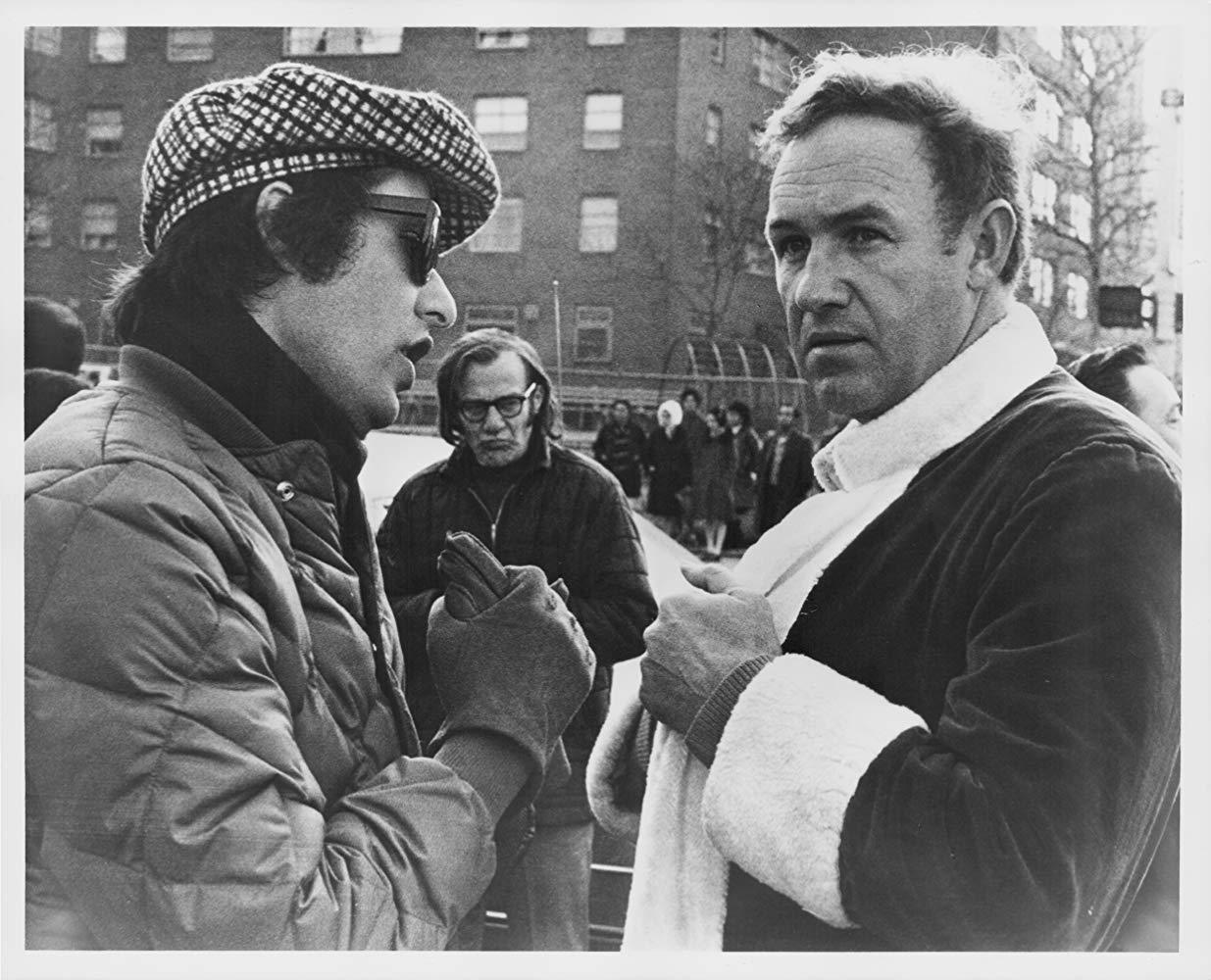 弗莱德金和主演吉恩·哈克曼在《法国贩毒网》拍摄现场