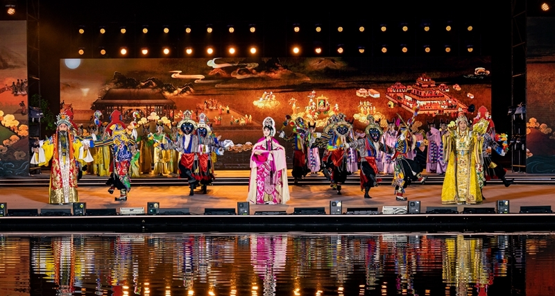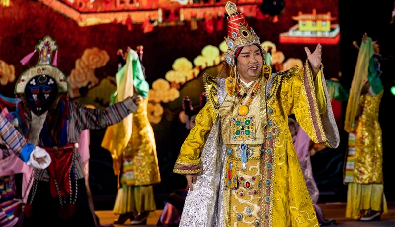 在2023拉萨雪顿节开幕式文艺演出上,京剧藏戏《文成公主》再次上演(8月16日摄)。丁增尼达 摄