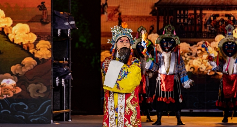 16日晚,在2023拉萨雪顿节开幕式文艺演出的舞台上,国家京剧院国家一级演员黄炳强穿着黄色蟒袍,迈着稳健的四方步缓缓上台,尽显李世民威武之气;另一边,饰演松赞干布的西藏自治区藏剧团团长班典旺久穿着金色藏戏服饰,步子大开大合,气宇轩昂地上场……时隔多年,两位演员在台上重逢。
