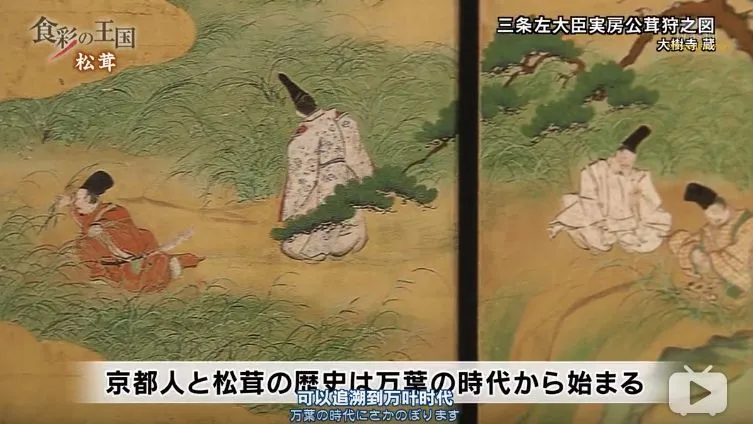 早在奈良时代,诗歌《万叶集》里就出现了“高松岭狭茸伞立,林间满盛秋之香”的句子。平安时代以后,贵族与僧侣会在夏秋之交,去山中寻觅采摘松茸,并将之称为“松茸狩”,是文雅有格调的事情。
