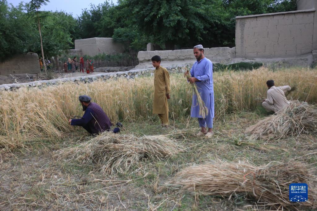 2023年5月15日,穆罕默德·纳西姆(左一)在阿富汗东部楠格哈尔省查帕尔哈尔地区的田间劳作。新华社发(赛义夫拉赫曼·萨菲摄)