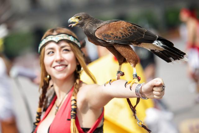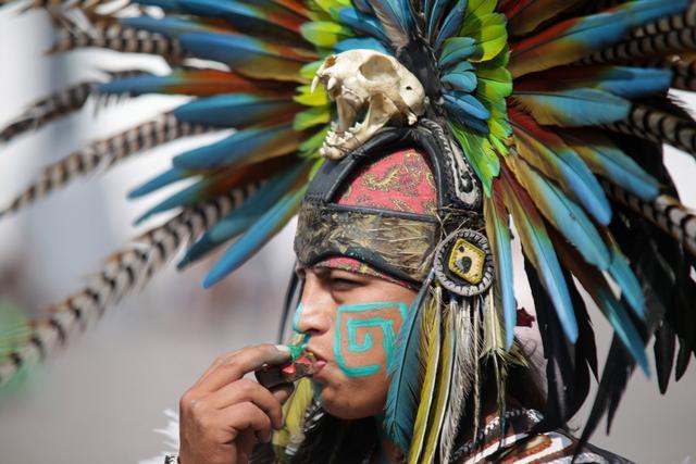 7月26日,在墨西哥首都墨西哥城宪法广场,演员在纪念活动上表演。当日,墨西哥在首都墨西哥城举行活动,纪念特诺奇蒂特兰城建立698周年。新华社发(弗朗西斯科·卡涅多摄)