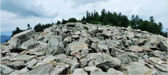 前白鸡峰顶堆积的撞击溅射物石块,边缘锐利,明显未受到很久的地质侵蚀 | 参考文献[2]