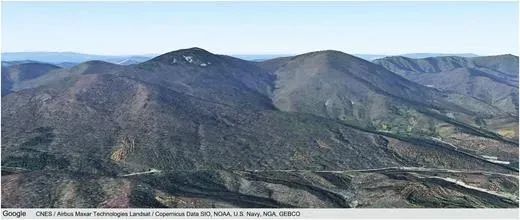 白鸡峰陨石坑的谷歌地球影像