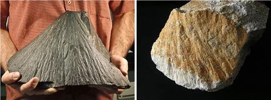 (左)加拿大魁北克Charlevoix陨石坑中发现的碎裂锥 | 维基 by JM Gastonguay;(右)德国Ries陨石坑中发现的碎裂锥 | 维基by Johannes Baier