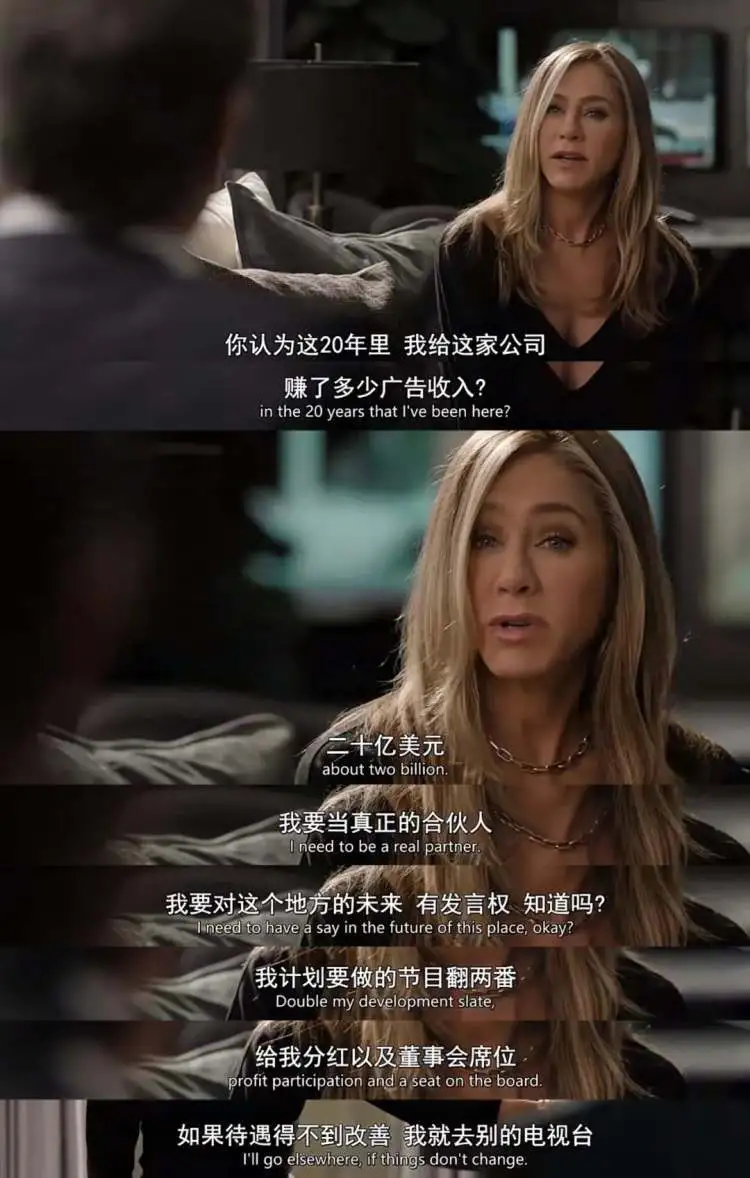 可老实说,看她跑去跟老板理论、提出诉求的模样,反而更能勾勒安妮斯顿戏外的影子。正如当年《老友记》一行六人,跑去跟制作方要求集体加薪的故事。