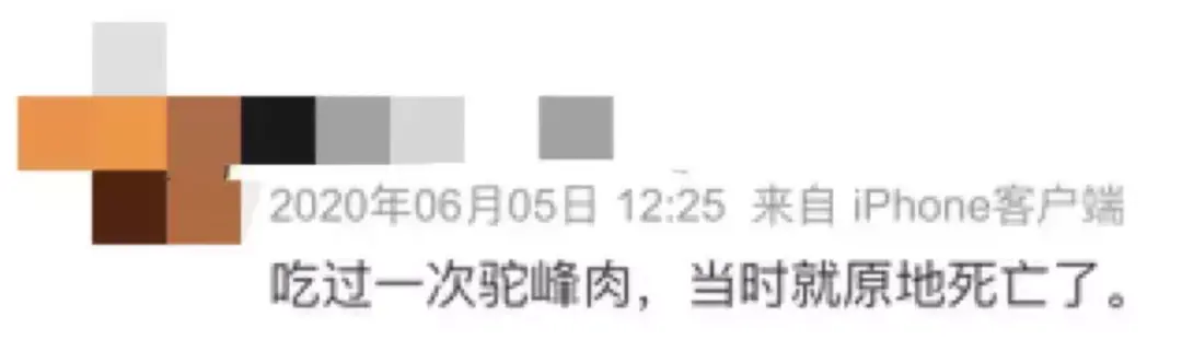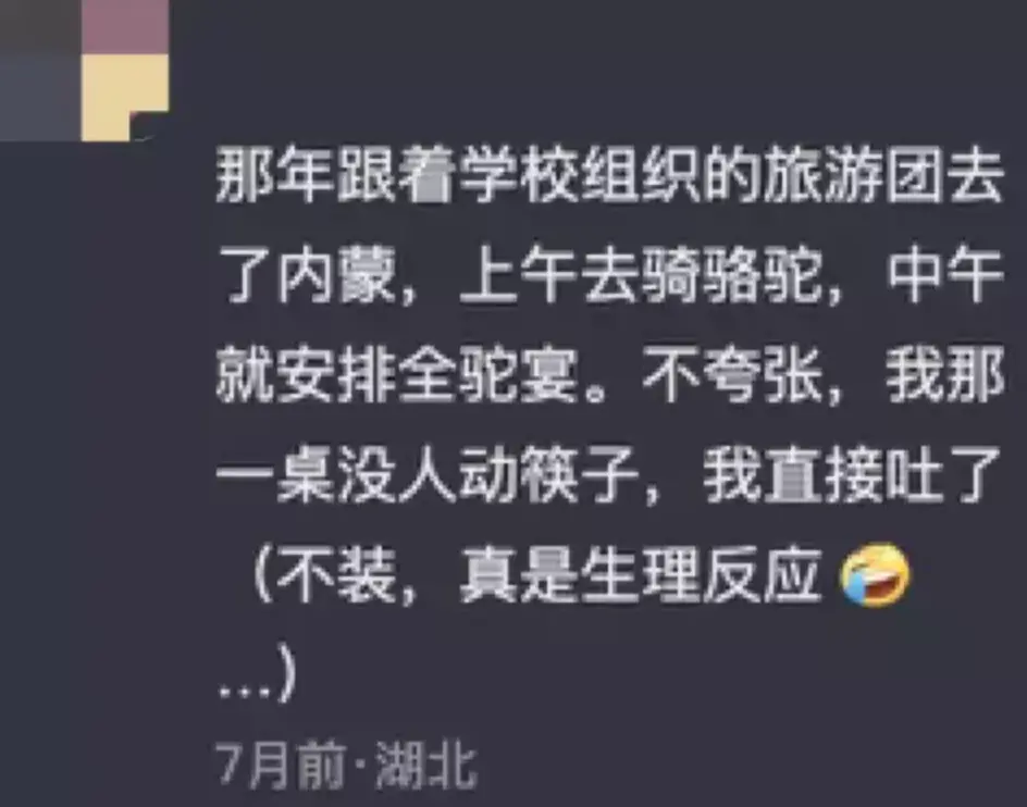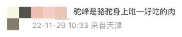 “骆驼肉不好处理,不用说驼峰,上次送朋友一根骆驼筋,他妈不会做,最后把高压锅都扔了。”