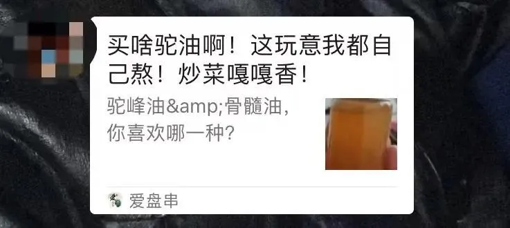 “去过阿拉善的朋友家我才知道,那明明是猪大油的大哥,驼大油,喝汽油也没这么解馋。”