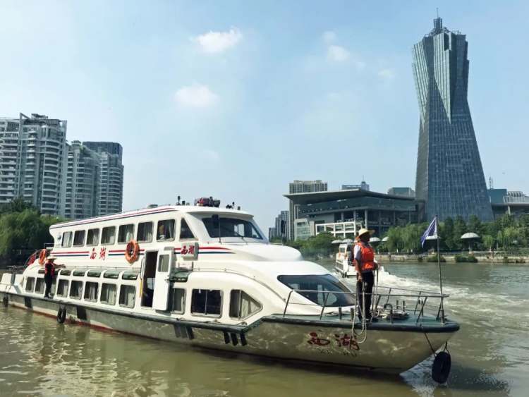 运营近20年的杭州水上巴士,票价只需3元,从早上7点到晚上6点,每隔半个小时左右发船。水上巴士一共有4条线,风景最出名的是1号线,途经拱宸桥、信义坊、武林门,顺着京杭大运河,可以看到桥西历史文化街区。下船走一小段,就能在小河直街的江南小巷里散步。