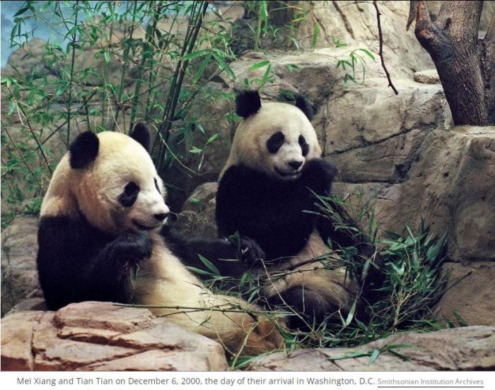 当地时间2000年12月,“美香”和“添添”抵达华盛顿。图片来源:美国《史密森尼》杂志网站