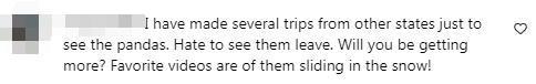 有人因为大熊猫要离开倍感失落,“我真的会想念那些可爱的面孔。”