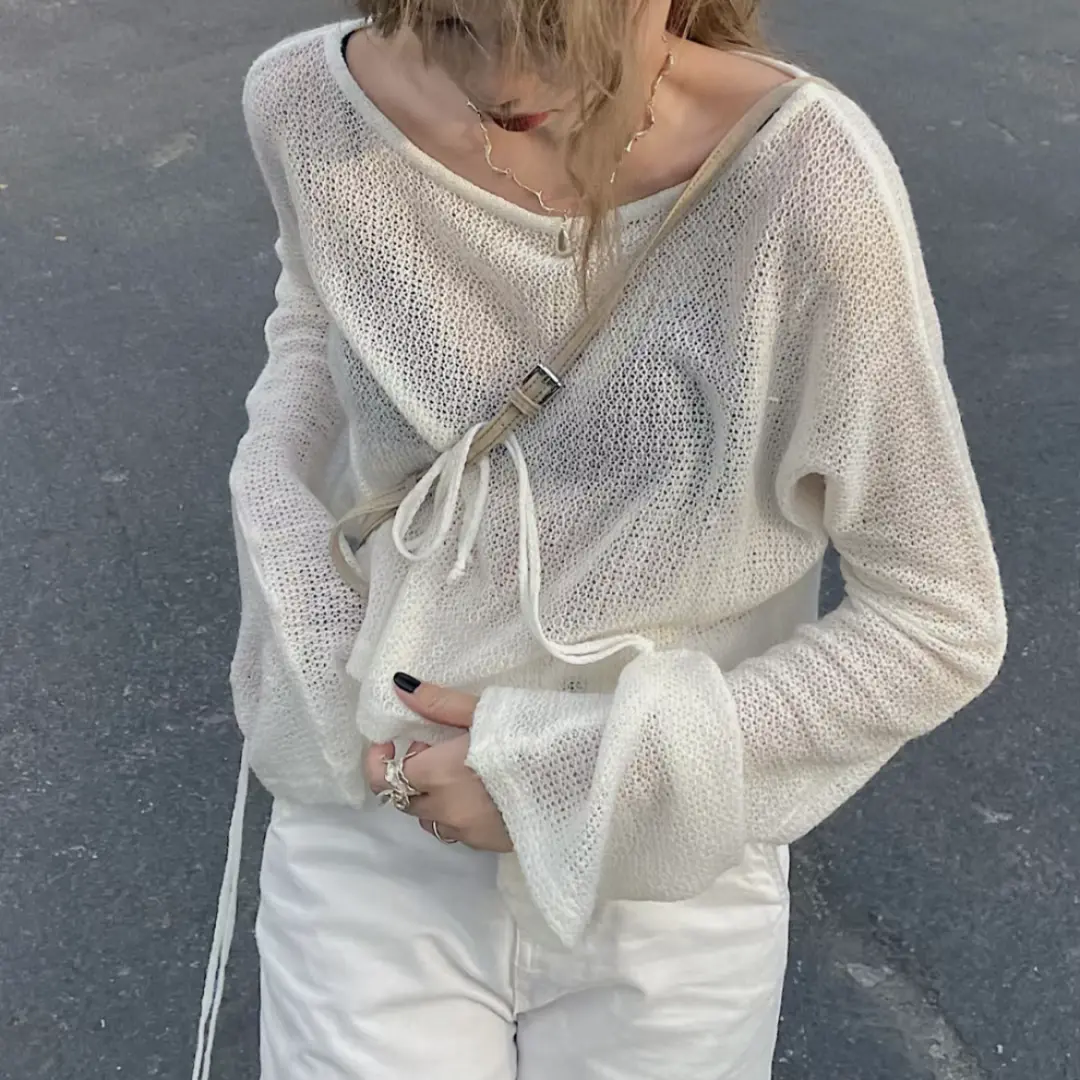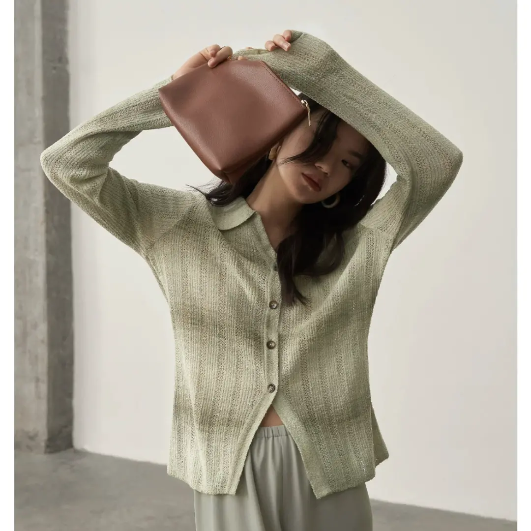 也可以先尝试这种带点透视感的针织开衫,初秋搭配小裙子、吊带,入冬后还可以作为内搭丰富层次。