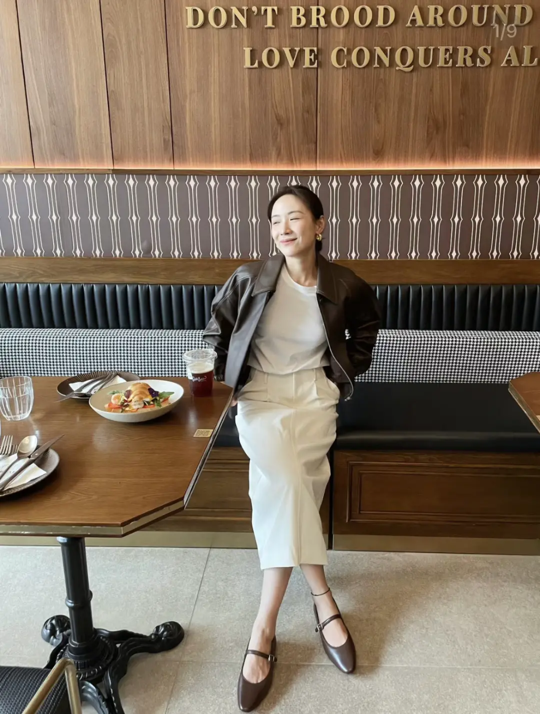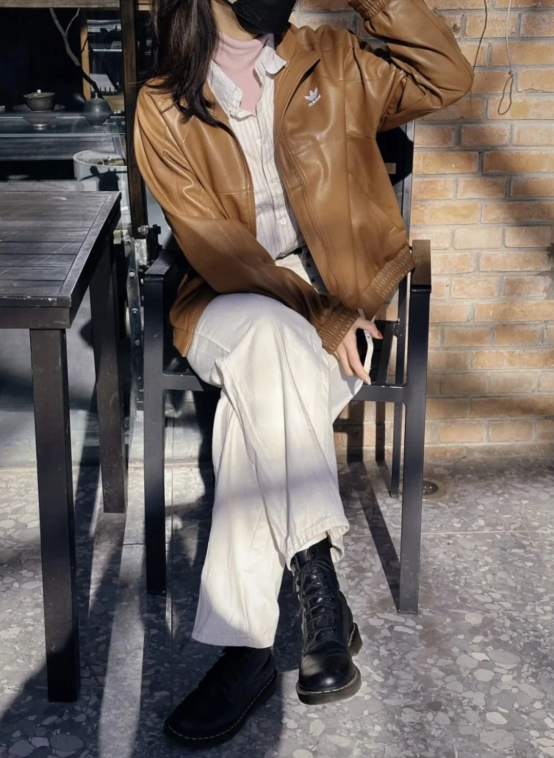 深秋时像高圆圆一样外搭一件机车风皮衣,又帅又干练。