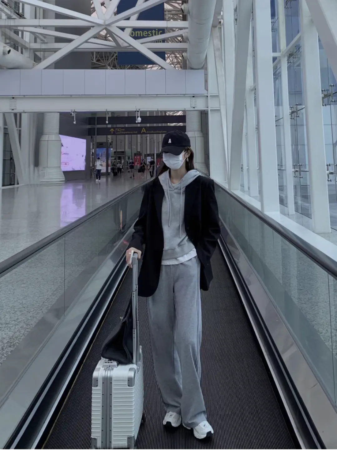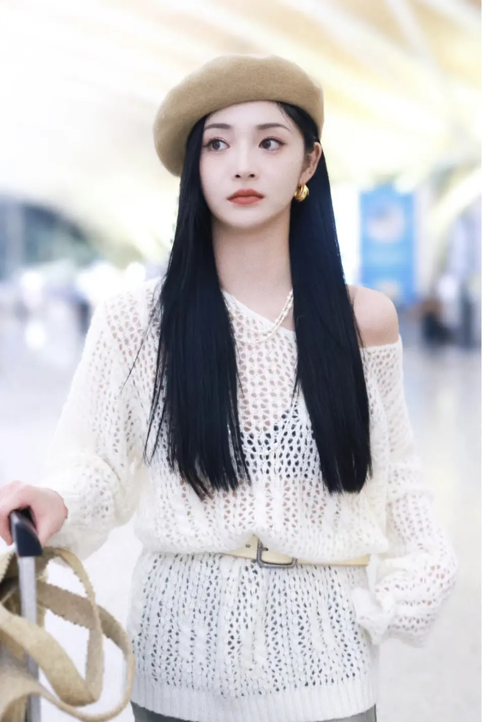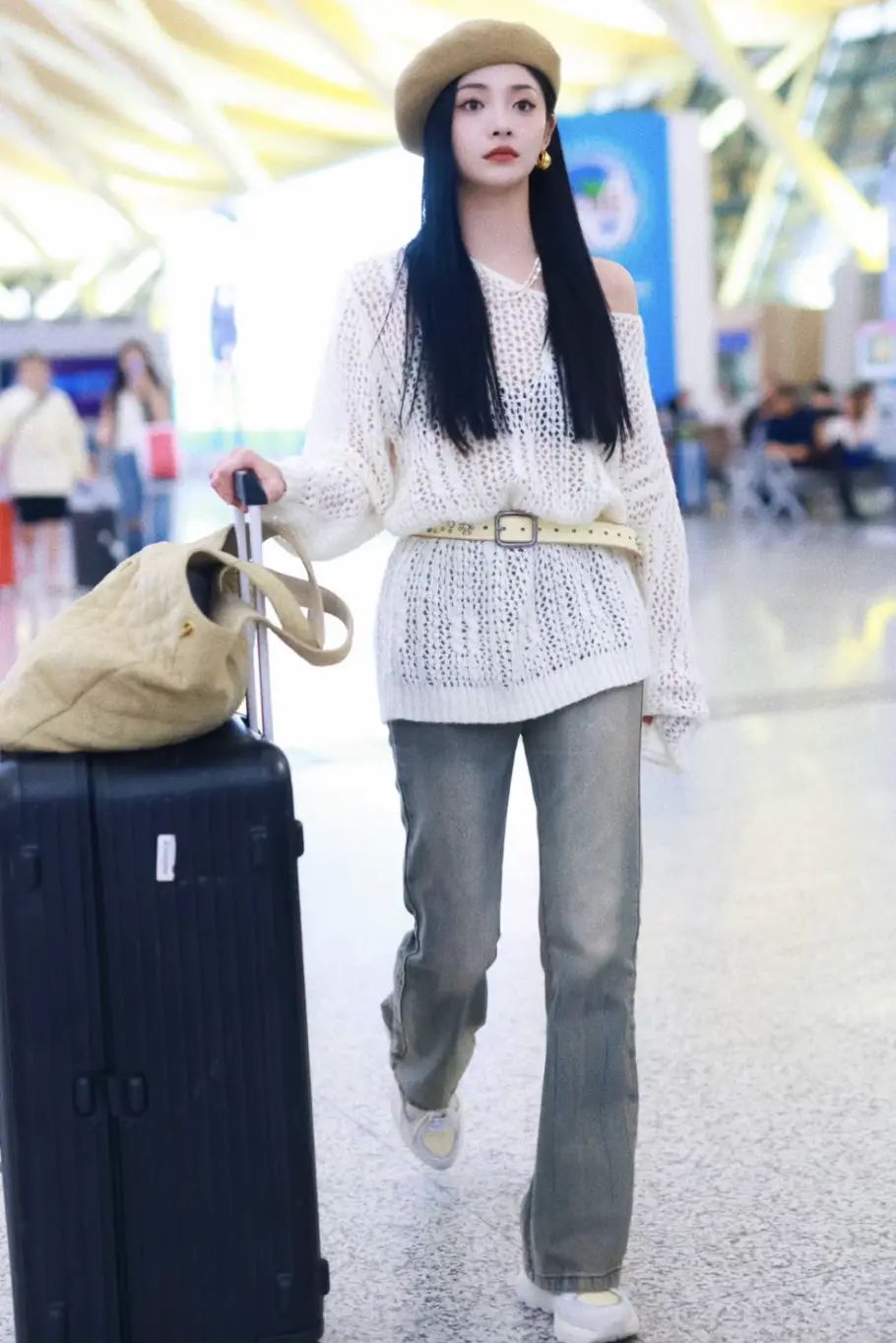 下半身可以搭配短裙或牛仔裤,周洁琼的机场街拍look姐妹们就完全可以直接copy下来!