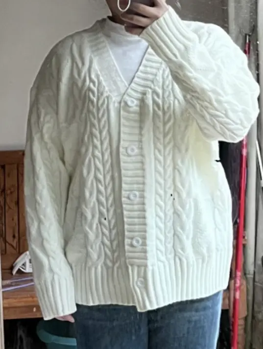 而且这种针织简直是苹果型姐妹的天菜!之前流行的粗棒针绞花毛衣,对上身丰满的姐妹很不友好!
