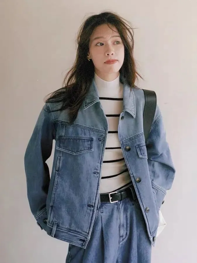 还有牛仔单品也可以融入进通勤的穿搭中。今年特别流行的double denim到了秋冬也一样适用。大表姐刘雯就在前段时间的米兰时装周上穿了一身牛仔套装。