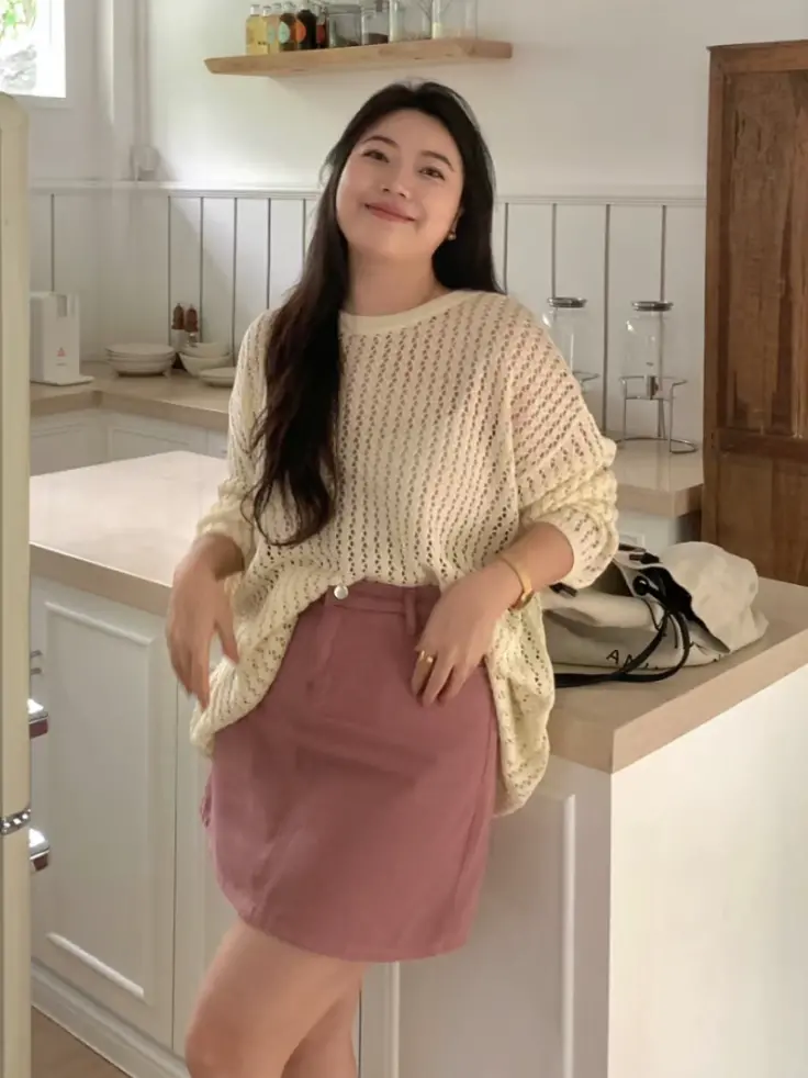 学院风绞花针织也很火。不过要尽量选择轻薄柔软,版型不要太宽松的,否则叠穿时会很显臃肿。