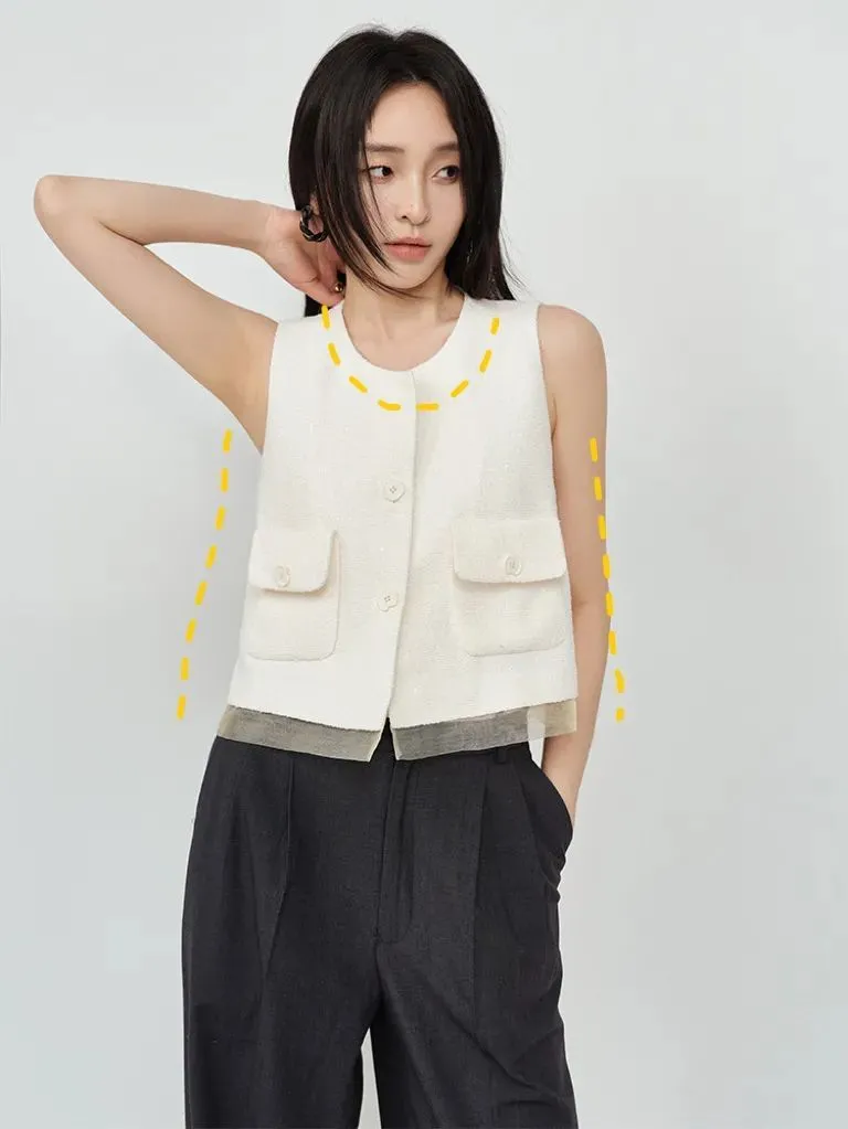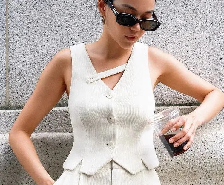 选择马甲的重点就是——V领+收腰,小圆领和宽松版型不便于后续叠搭,也不如V领显瘦。