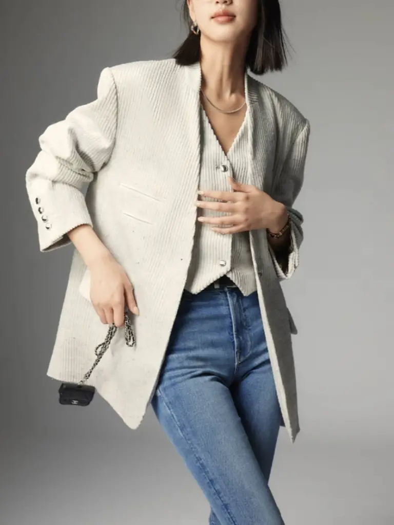 尤其是今年特别🔥的水洗灯芯绒和毛呢材质,能够显得特别温暖,即使入冬也能穿。