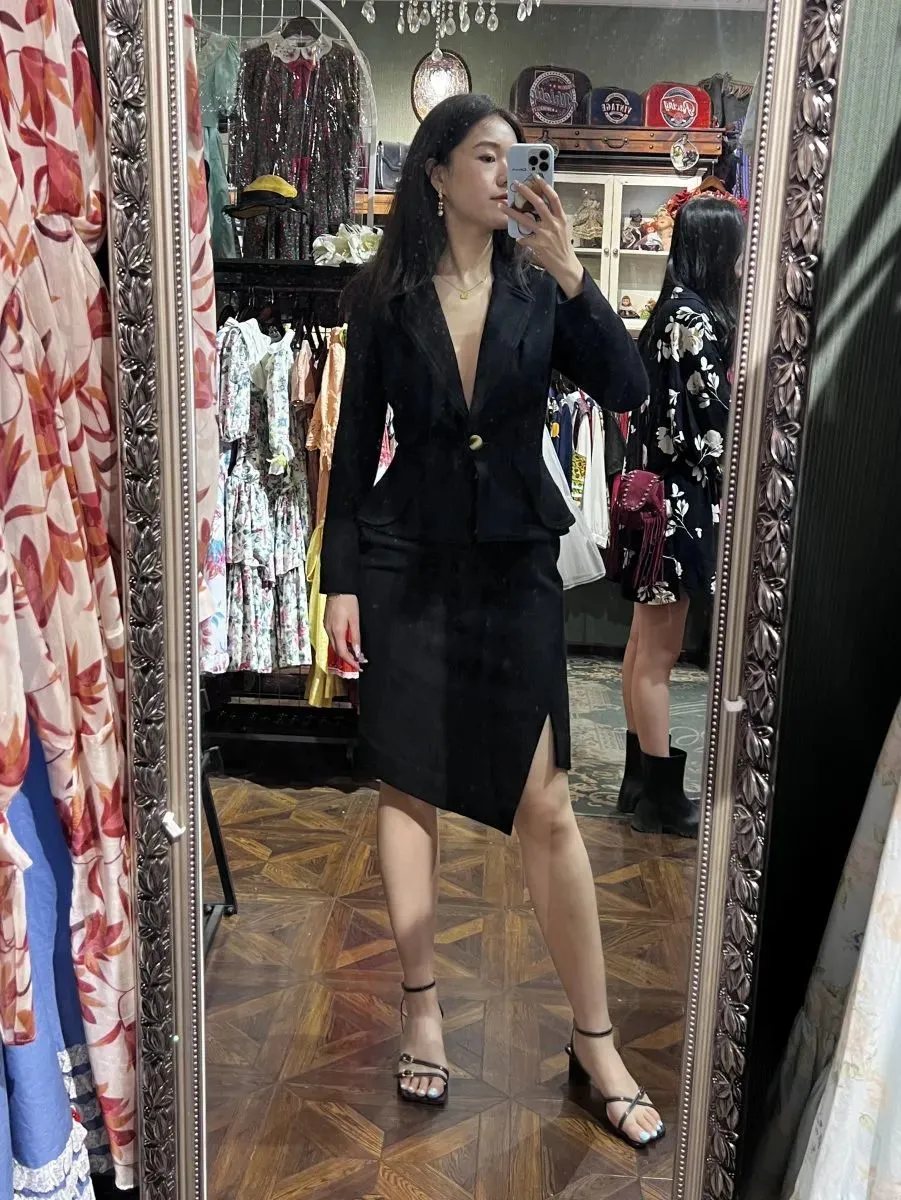 收腰款西装其实今年也是一个小热门!买手bobo前段时间在Vintage店里淘到了一件毛呢质感的大V领套装,意料之外地显瘦!