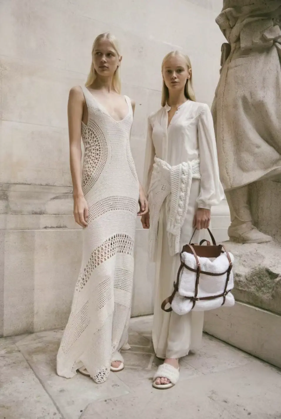 搭配比较有空气感的针织,一点也不违和,反而有种法式随性的浪漫。