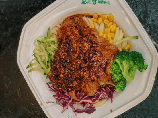 当看到透明厨房里,师傅铁锅爆炒,食材翻腾的场景后,多了些期待。成品意外好吃,颗粒分明的筋道米饭,牛肉丝香气明显,牛油裹着米饭和酸菜。第一个想到把酸菜加进炒饭真是天才,口感爽脆,解腻开胃,让炒饭吃着也不那么油,青红椒圈点缀之余贡献了微微辣意,再加个蛋,简直是教育大家绝不能以貌取饭。