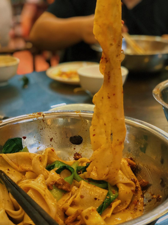 面粉带来的丰裕,还有西安千变万化的面食形态。久闻裤带面大名,当看到气势磅礴的不锈钢大盆端上来,盆里只装着3根宽裤带面、却足足占满一盆时,还是感到了小小震撼。