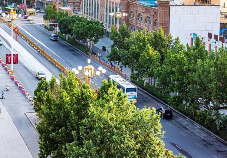 车流穿梭在喀什。(图/视觉中国)