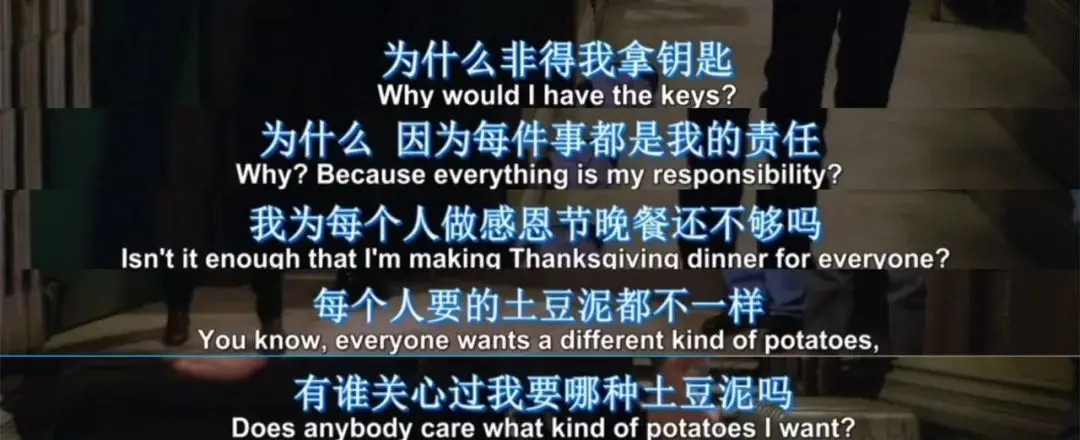 也是这句话,彻底点燃了莫妮卡心中的委屈:“为什么非得我拿钥匙?我为每个人做感恩节晚餐还不够吗?每个人要的土豆泥都不一样,有谁关心过我要哪种土豆泥吗?”