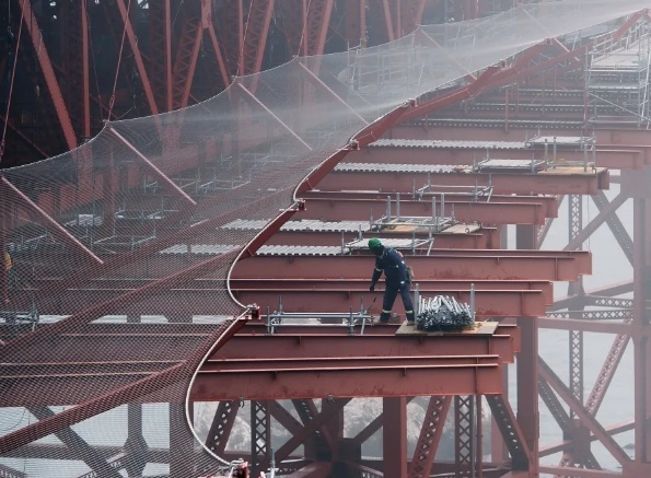 美国旧金山市著名景点金门大桥的管理部门斥巨资修建的自杀防护网即将完工。图源:外媒