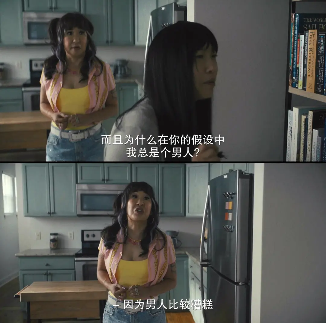 然而,《猜谜女士》并不仅仅是一部纯粹的喜剧片,对于女性群体、亚裔群体来说,同样充满了许多讽刺社会现状的黑色幽默和经典台词。