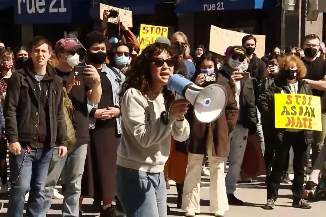 在荧幕外,我们也看到吴珊卓勇敢走上街头,大声地为自己的肤色疾呼,“I am proud to be Asian. ”呼吁社会对亚裔群体给予尊重与保护。
