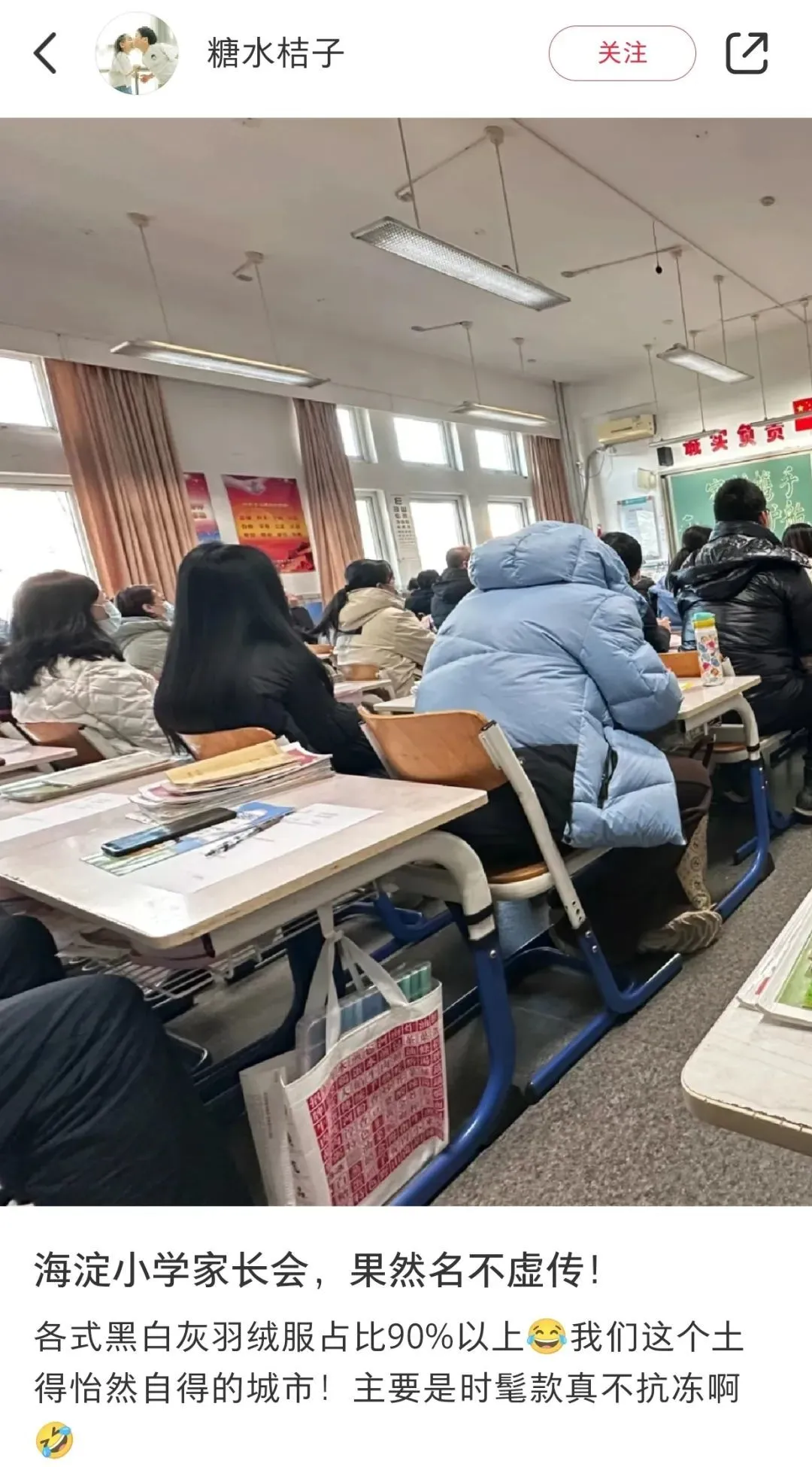 海淀人从不为穿衣内耗,从家长会上也能看出来。
