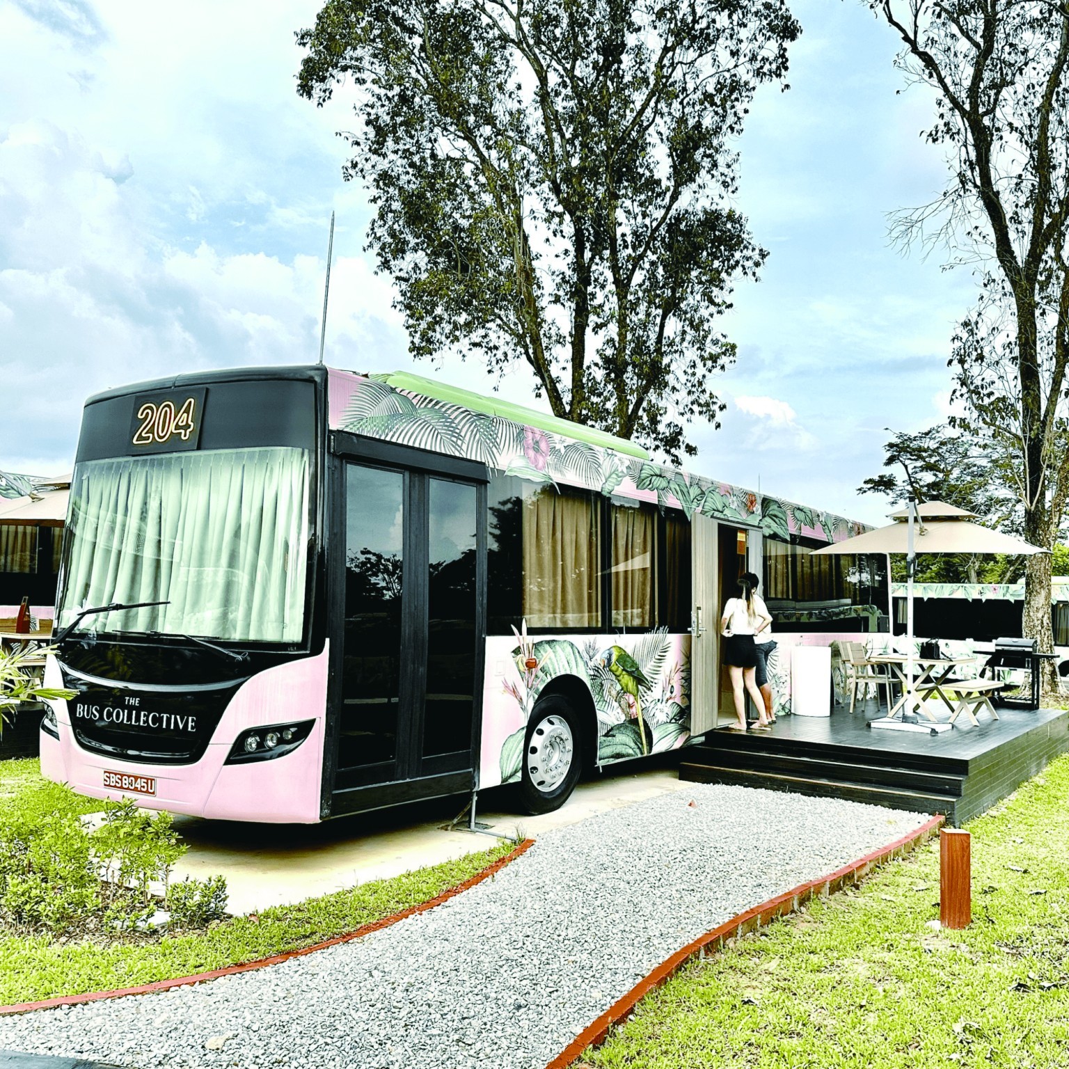 “峇世界”占地8600平方米,绿植遍布,好像一处原始村落。但不同的是,房屋的位置被巴士占据了——酒店所有的房间都由“退役巴士”改造而来。新加坡新捷运公司退役的20辆公共巴士变身20间客房,每间客房的名字就是退役巴士曾经运营的路线。