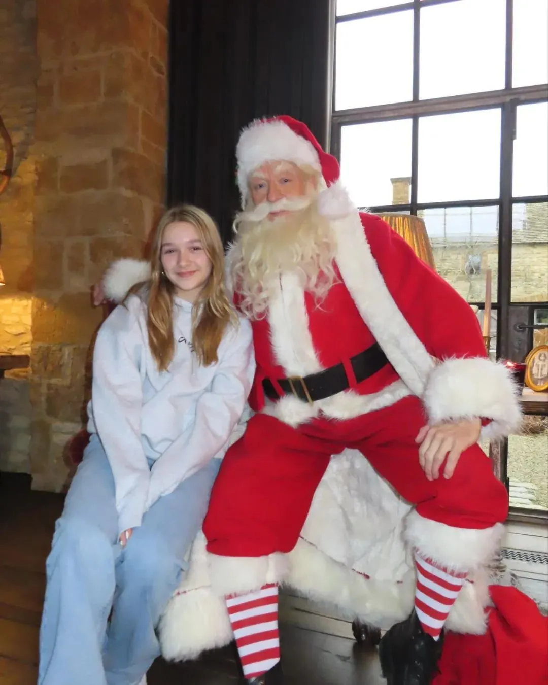 又回英国豪宅过平安夜,和圣诞老人合影。