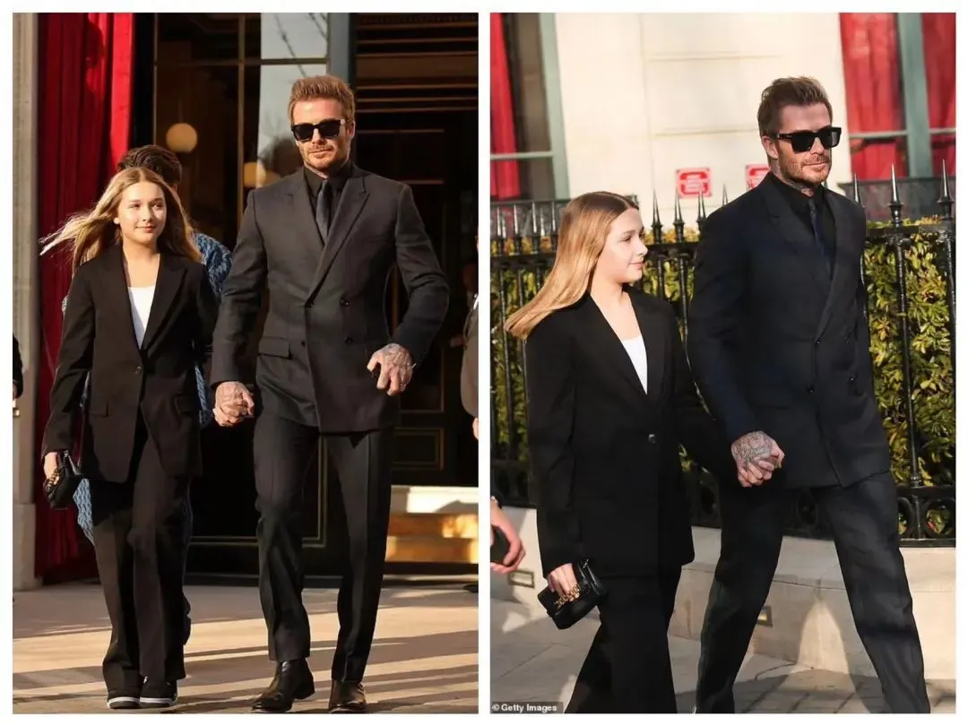 年初巴黎时装周身穿贝嫂定制的西服套装,搭配了一双AJ,和小贝上演街头父女秀,让网友们都惊叹:小七居然已经长这么大,这么时尚漂亮了?!