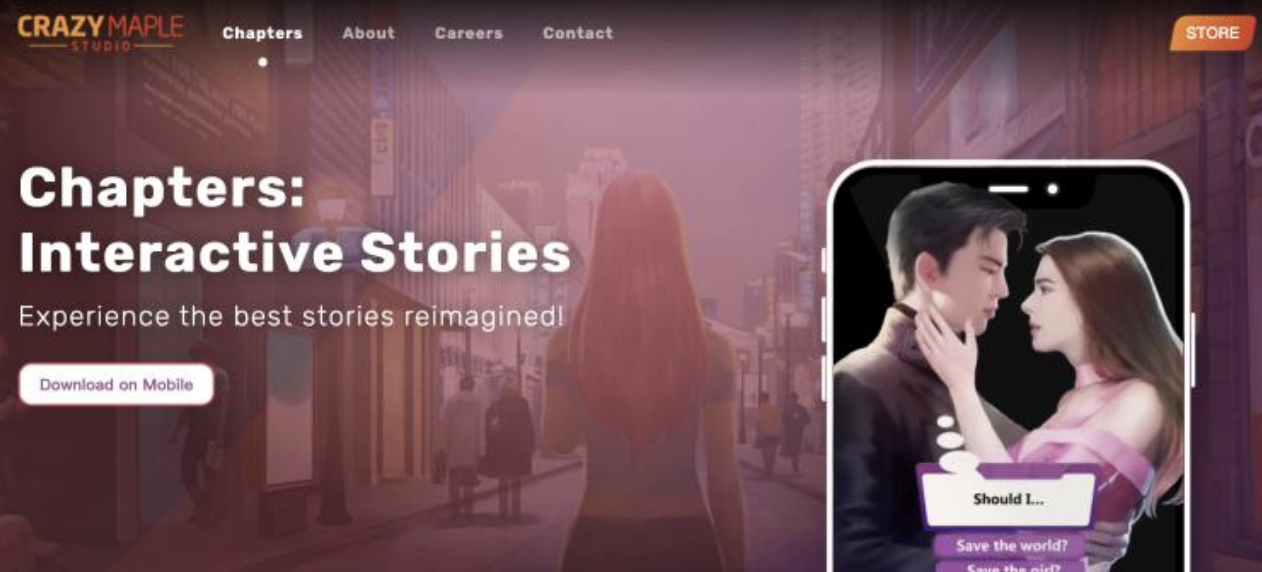 事实上,早在Reelshort之前,Crazy Maple Studio(枫叶互动)旗下就推出了《Kiss- Read & Write Romance》和《Chapters: Interactive Stories》两款小说产品。