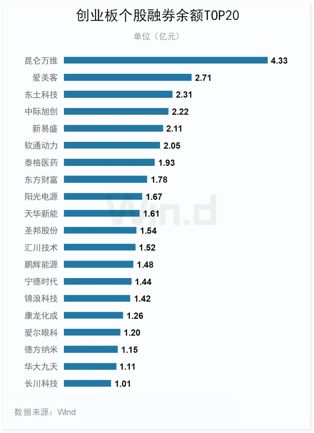 2023年末,昆仑万维融券余额为4.33亿元居首,爱美客、东土科技、中际旭创等5家融券卖出超2亿元。