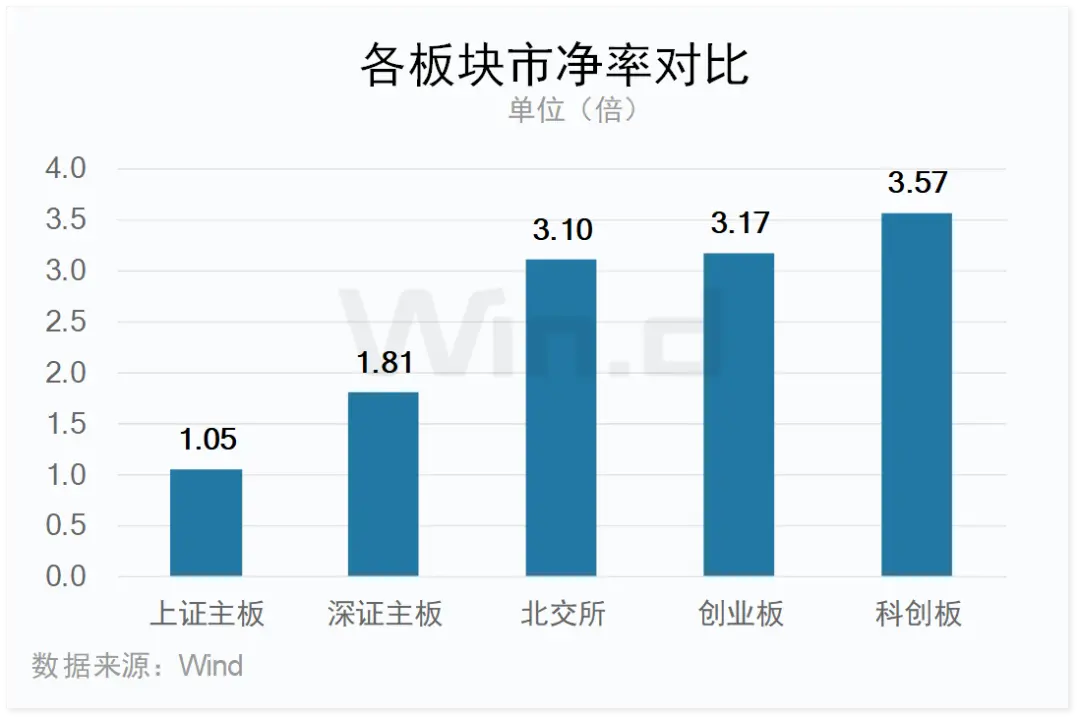 创业板2023年末市净率为3.17倍,高于沪深主板,低于科创板。