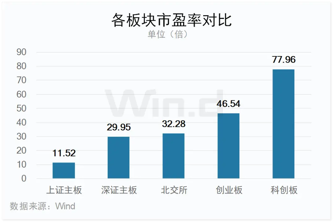 创业板2023年末市盈率为46.54倍,高于上证主板、深证主板和北交所,低于科创板。