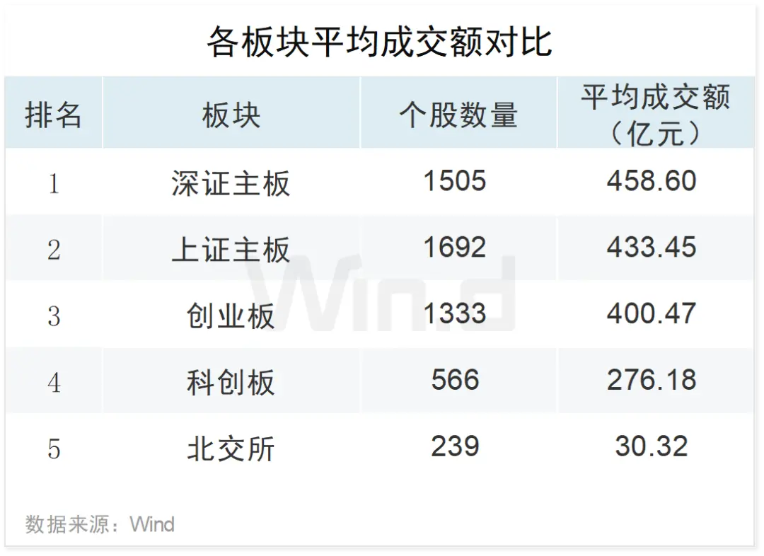 2023年,创业板总成交额达53.38万亿,单只个股的平均成交额400.47亿元,大幅高于科创板。