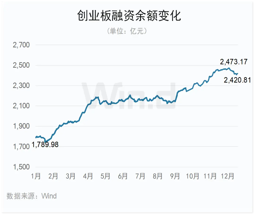 2023年末,创业板融资余额为2420.81亿元,接近全年最高位2473.17亿元,较年初增加630.82亿元,杠杆资金持续买入。